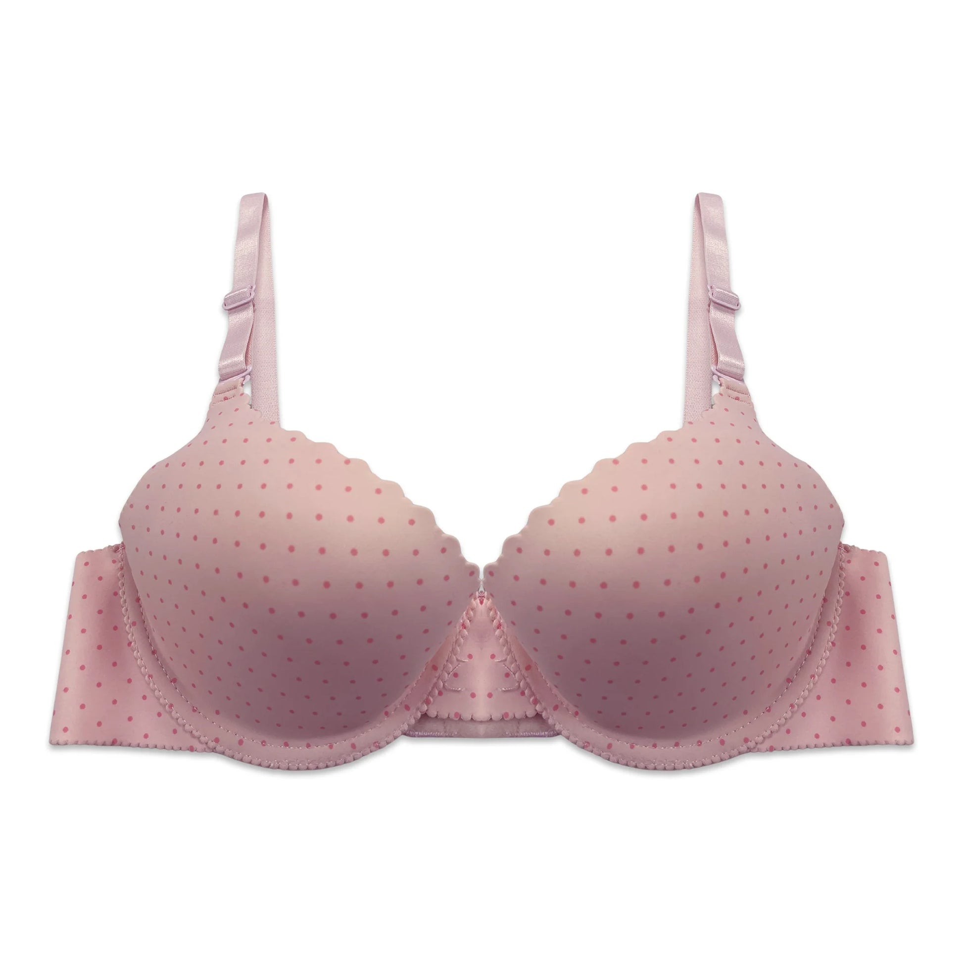 Engineered for comfort and support, this padded bra features a soft dot pattern in flattering pink. The cushioned cups provide gentle shaping while maintaining a natural silhouette, making it ideal for everyday wear. Breathable fabric ensures all-day comfort, while the structured design offers reliable support. Perfect for those seeking a balance between style and functionality in their intimate apparel collection.